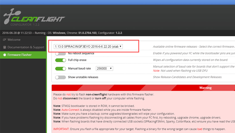 The SPRacingF3 runs Cleanflight and is configured using the Cleanflight Configurator. It has a stack of great features, such as these:
