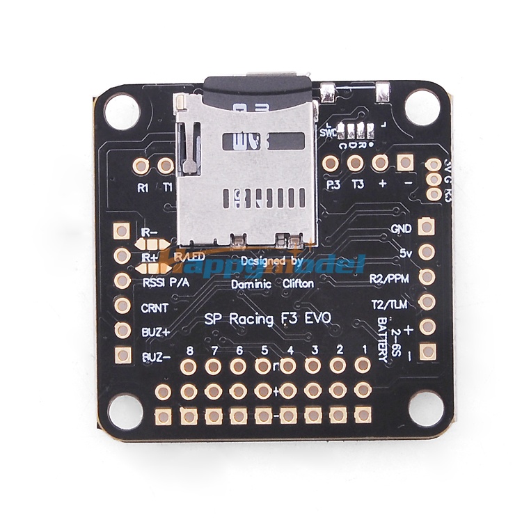 The SPRacingF3EVO is the first and only standard sized board for Cleanflight that features a MicroSD card socket for logging. Supports MicroSD/SDHC up to 32GB - just leave one in and log every flight!